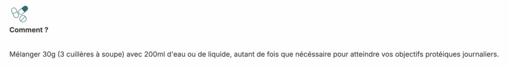 Mais gardez toujours en tête la mesure entre 150 et 250 ml d’eau pour 30g de protéines, c’est une très bonne base.