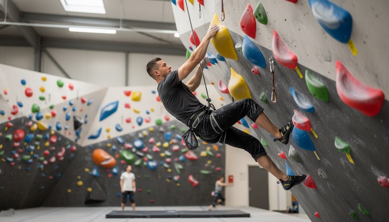 Les bras, le dos, les épaules et les avant-bras sont fortement sollicités, avec le gainage qui joue un rôle important pour rester stable sur le mur. L’escalade développe aussi une excellente mobilité, notamment au niveau des hanches et des épaules, ainsi qu’une très bonne proprioception.